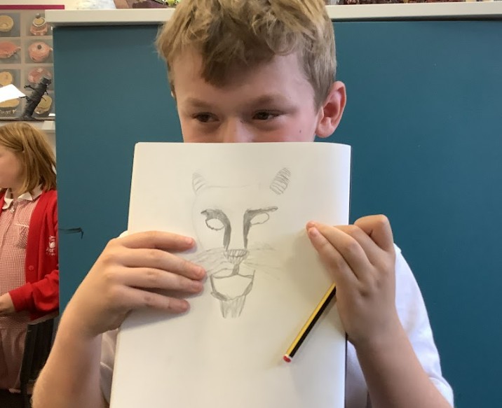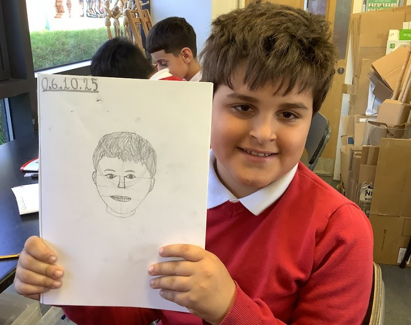First, we explored self-portraits, learning about perspective and angles to help us understand how to draw faces accurately. We studied where features like eyes, noses and mouths are positioned, using the “halving, halving, and halving again” rule to guide us. Then, we moved on to the twelve beasts of Hercules, thinking about what made each creature human or animal. We experimented with combining features and asked ourselves whether the same facial proportions we used for humans could also work for these imaginative beast forms.